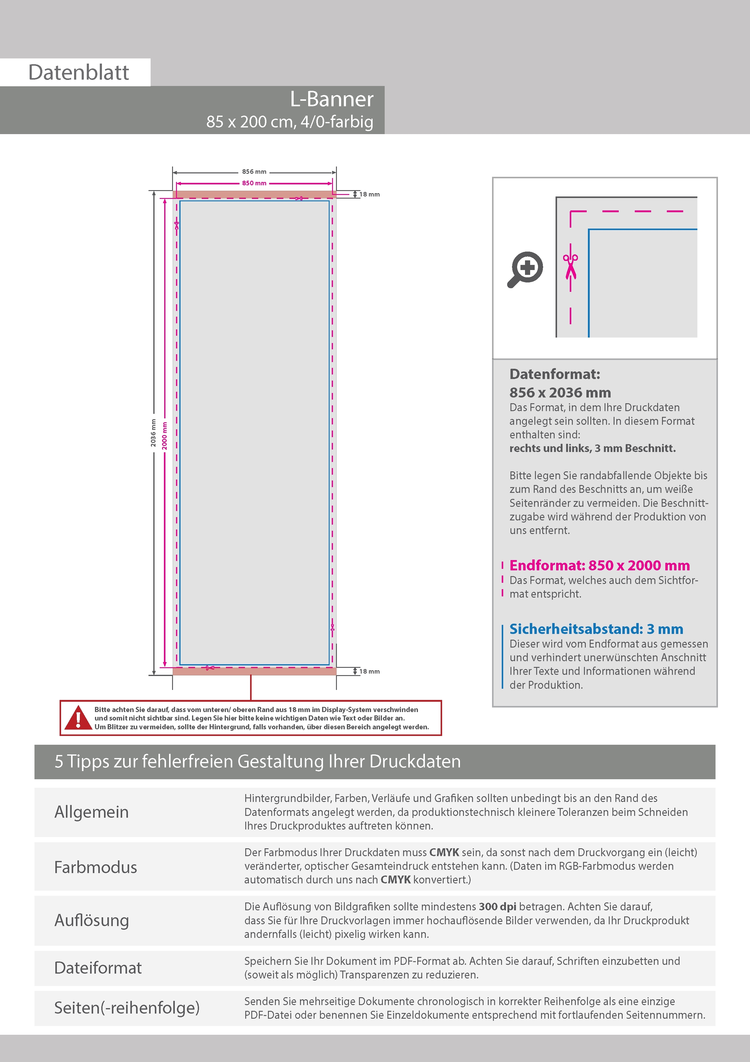 Ersatzdruck für L-Banner 85 cm x 200 cm