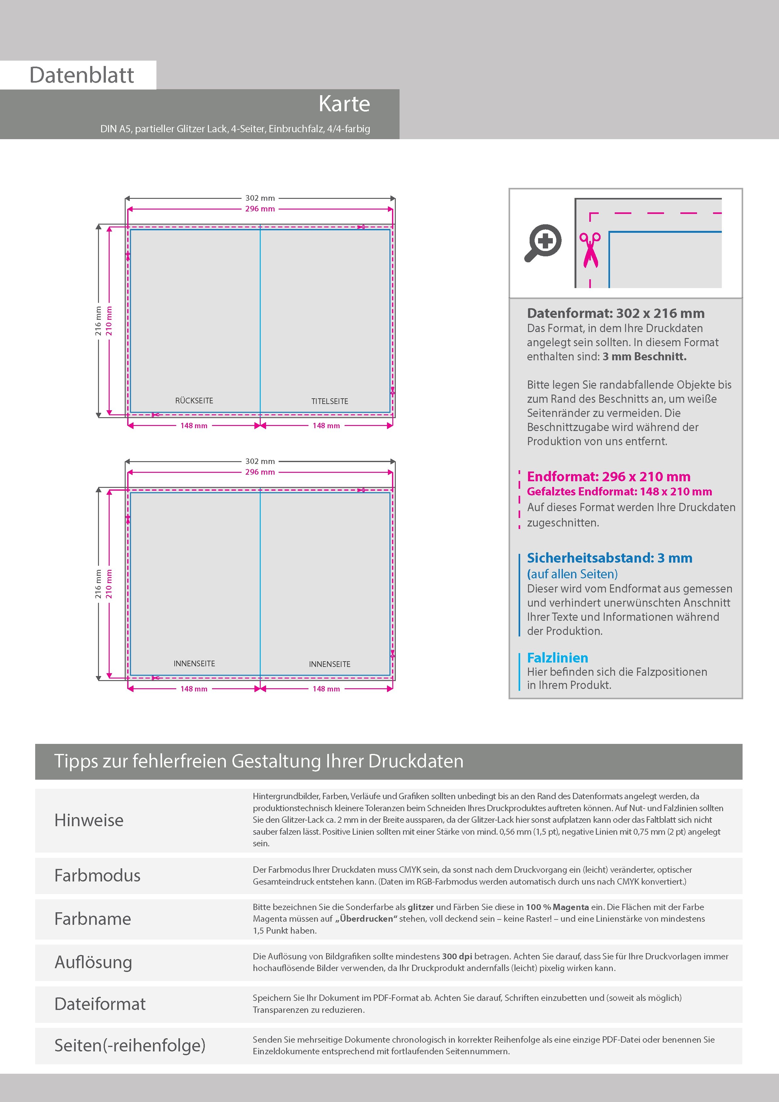 Einladungskarte DIN A5 4-seiter 4/4 farbig mit beidseitig partieller Glitzer-Lackierung