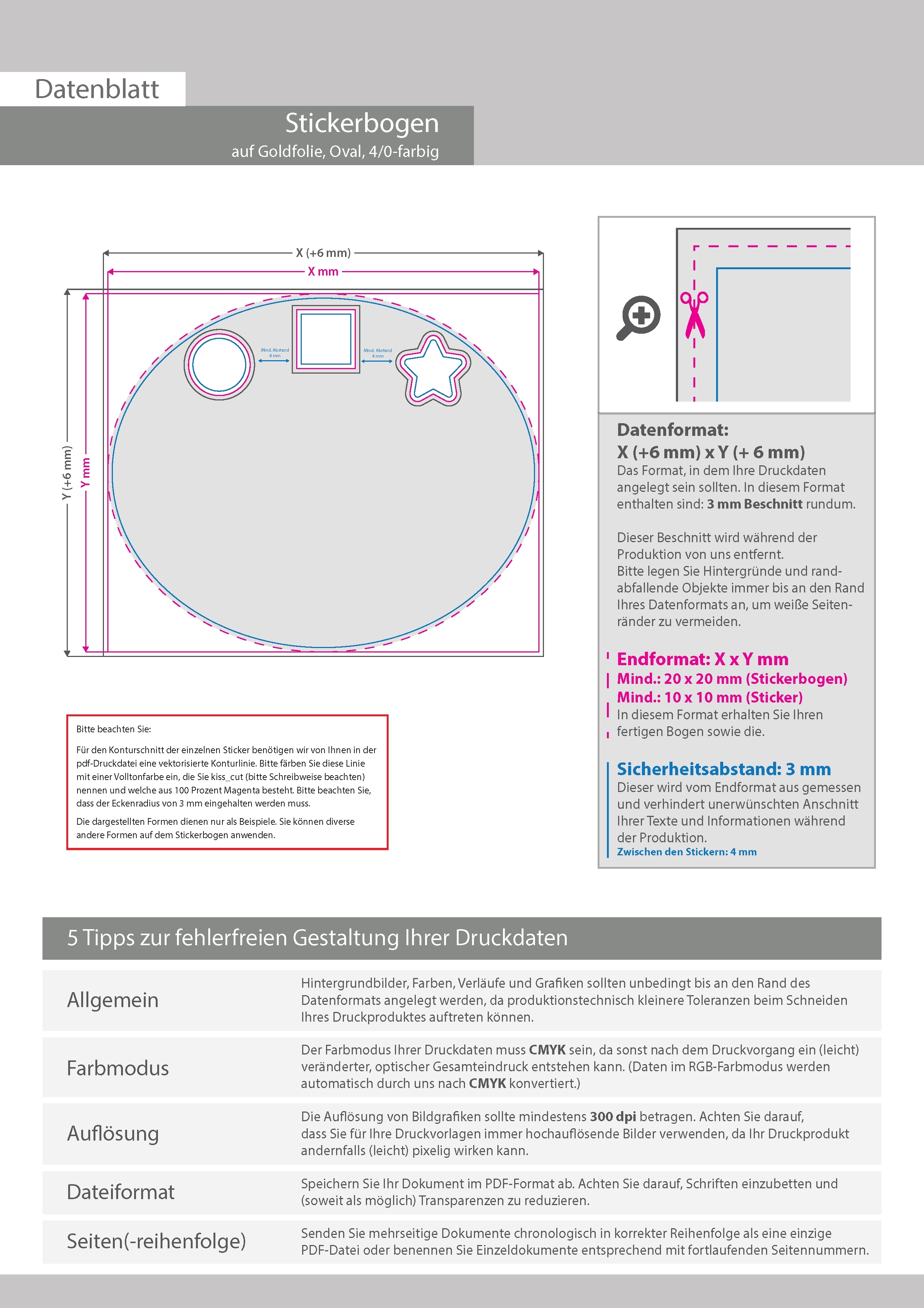 Stickerbogen auf Goldfolie 4/0 farbig bedruckt oval (oval konturgeschnitten)