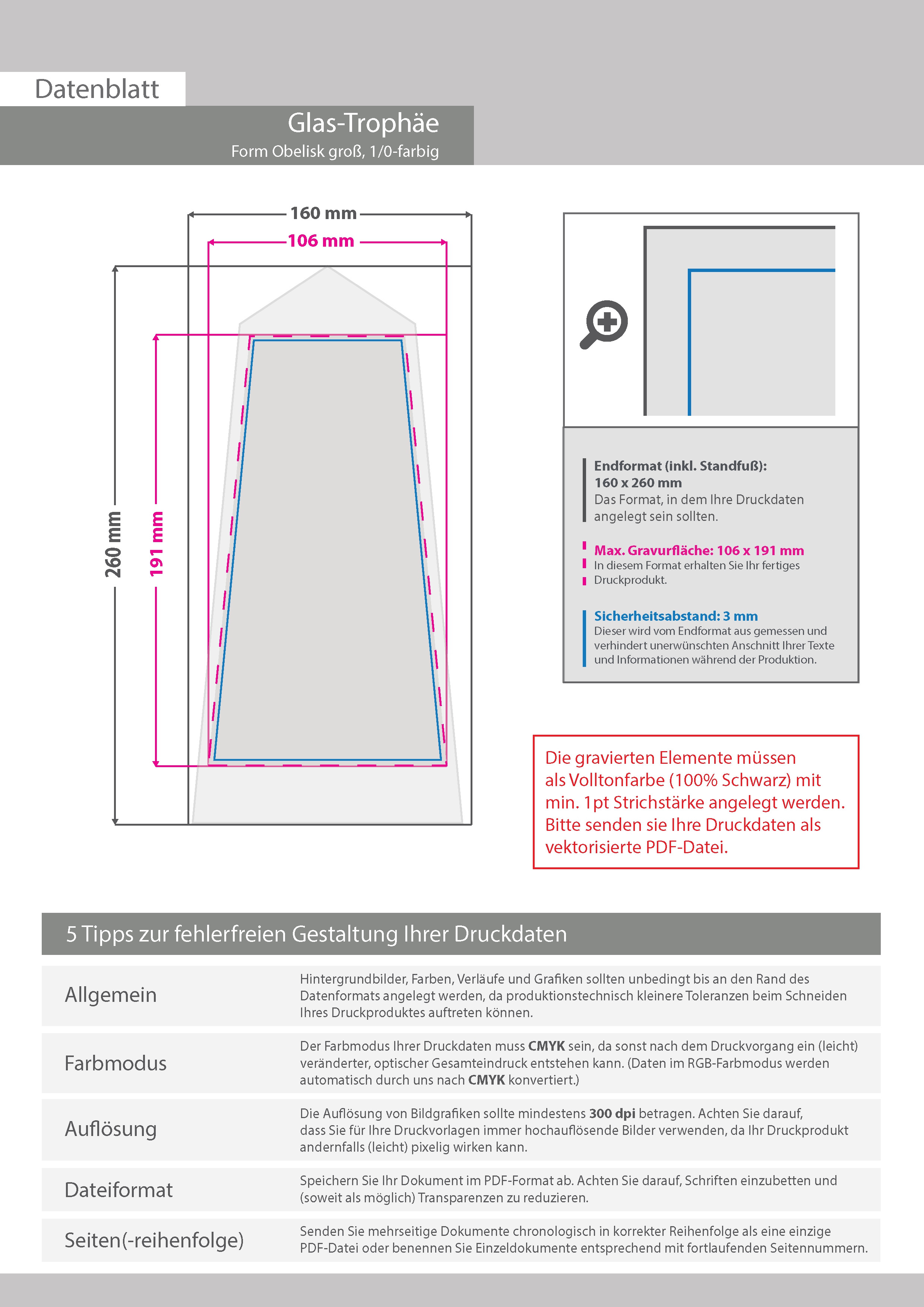 Glas-Trophäe OBELISK groß, 16,0 x 26,0 cm mit einseitiger Lasergravur