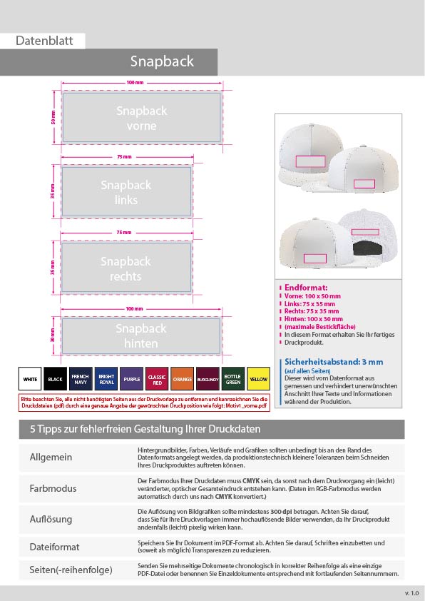 Snapback Panel Rapper Cap, mit DREI Stickpositionen
