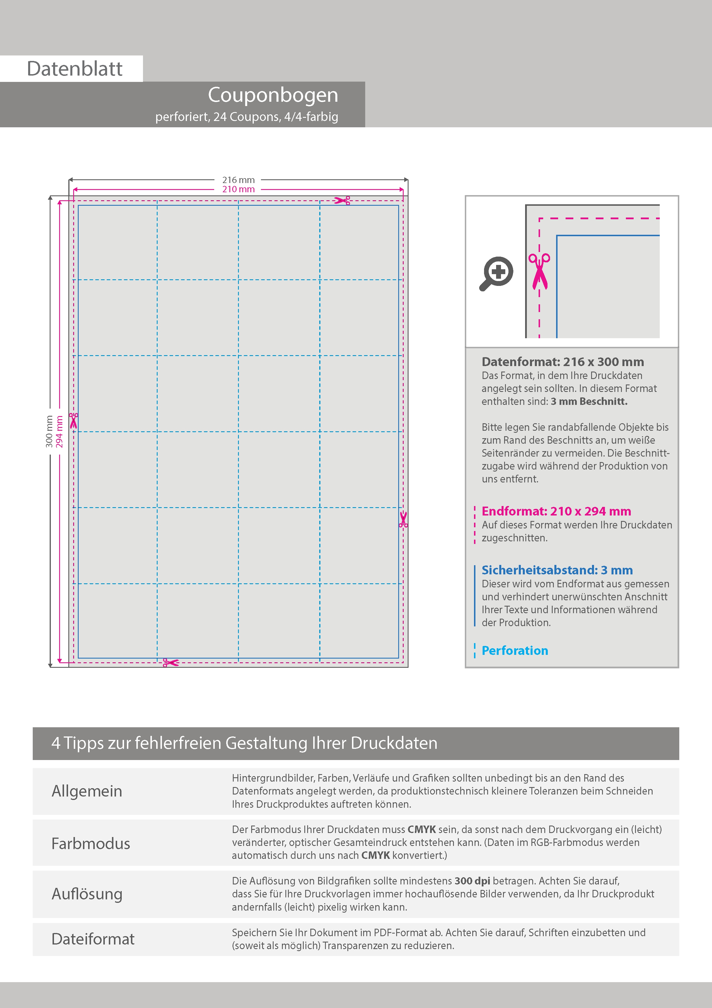 Couponbögen perforiert 24 Coupons, beidseitig 4/4-farbig bedruckt