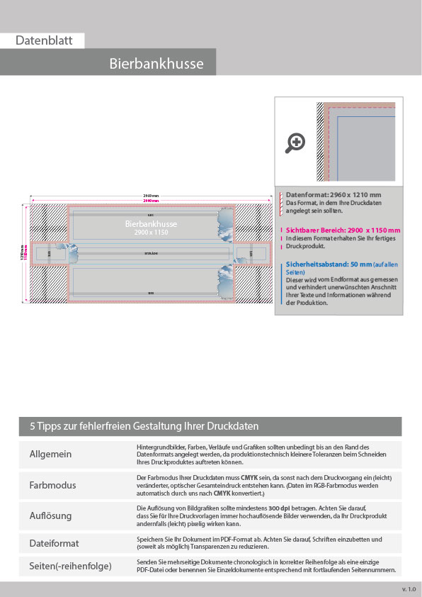 Bierbank-Husse Small LANG, rundum geschlossen, 4/0-farbig bedruckt