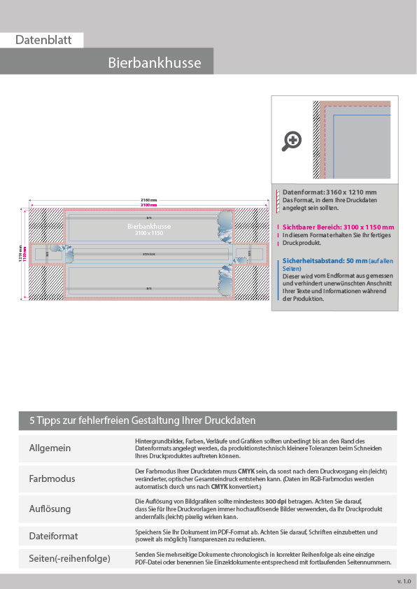 Bierbank-Husse Medium LANG, rundum geschlossen, 4/0-farbig bedruckt