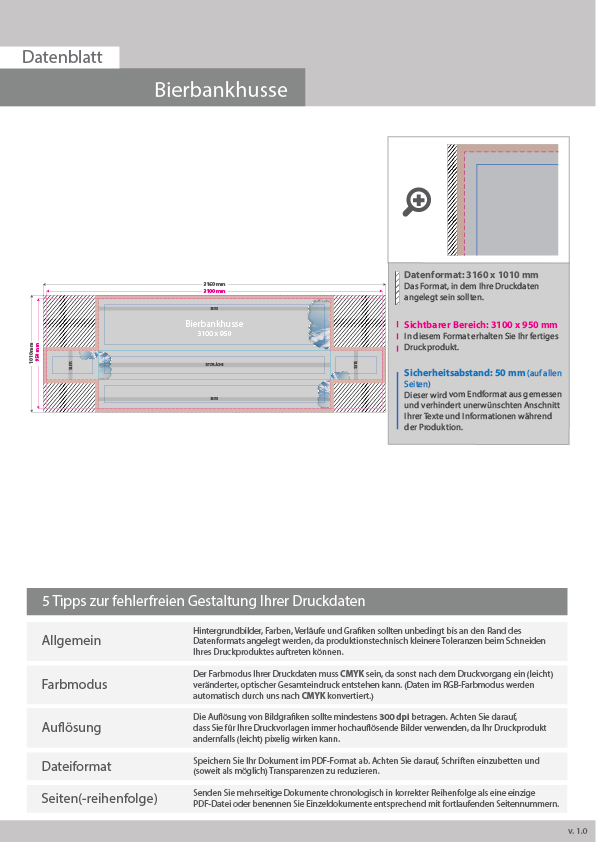Bierbank-Husse Medium FUSSBEREICH KURZ, 4/0-farbig bedruckt