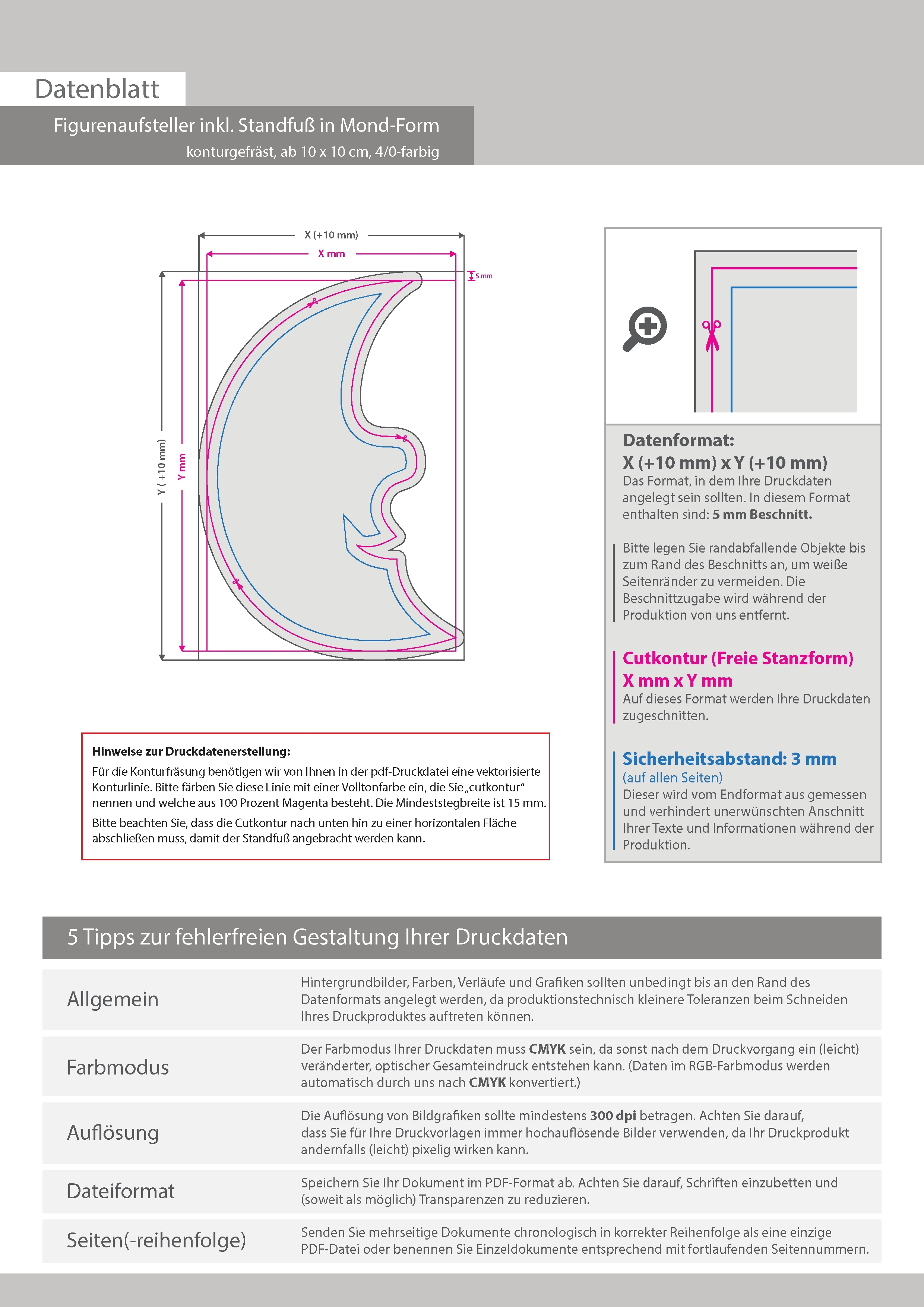 Figurenaufsteller inkl. Standfuß in Mond-Form konturgefräst, ab 10 x 10 cm, einseitig 4/0-farbig bedruckt