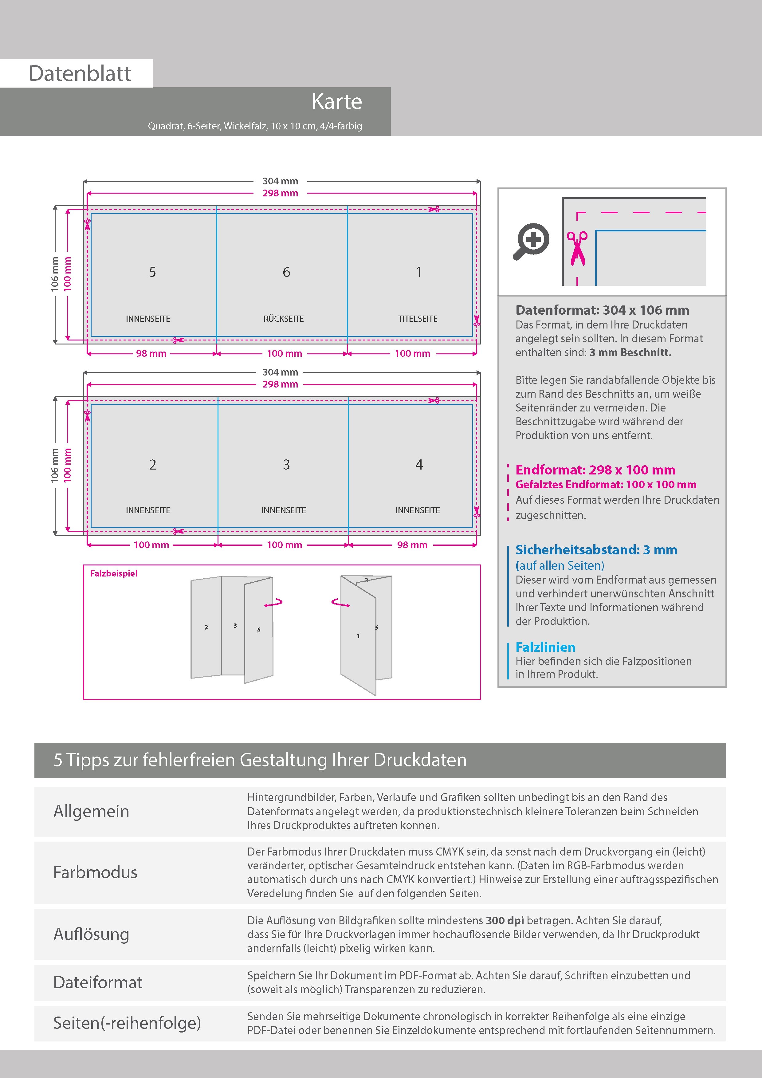 Geburtstagskarte, gefalzt auf Quadrat 10,0 cm x 10,0 cm, vertikaler Wickelfalz, 6-seitig