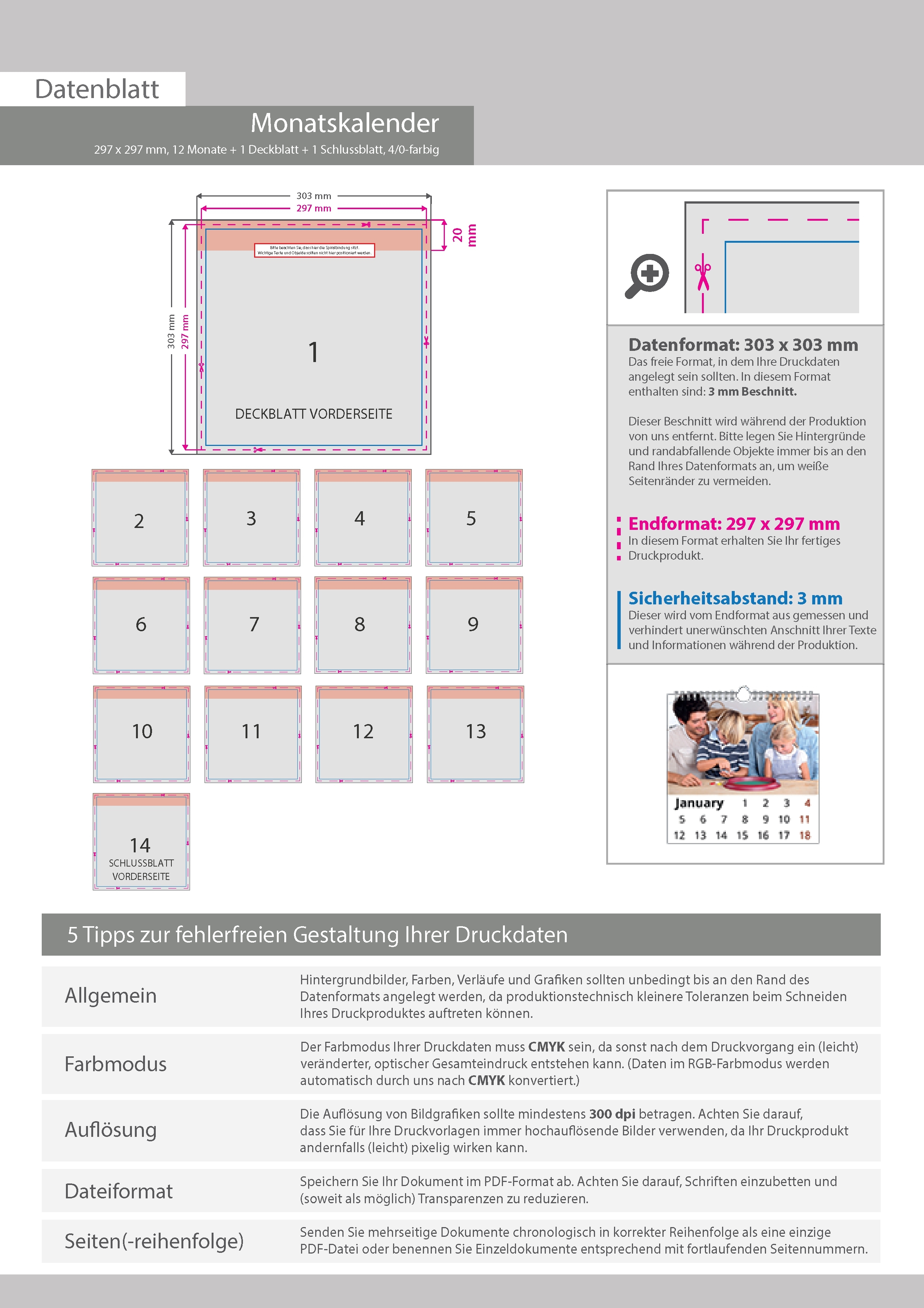 Monatskalender 14 Blatt (12 Monate + 1 Deckblatt + 1 Schlussblatt)