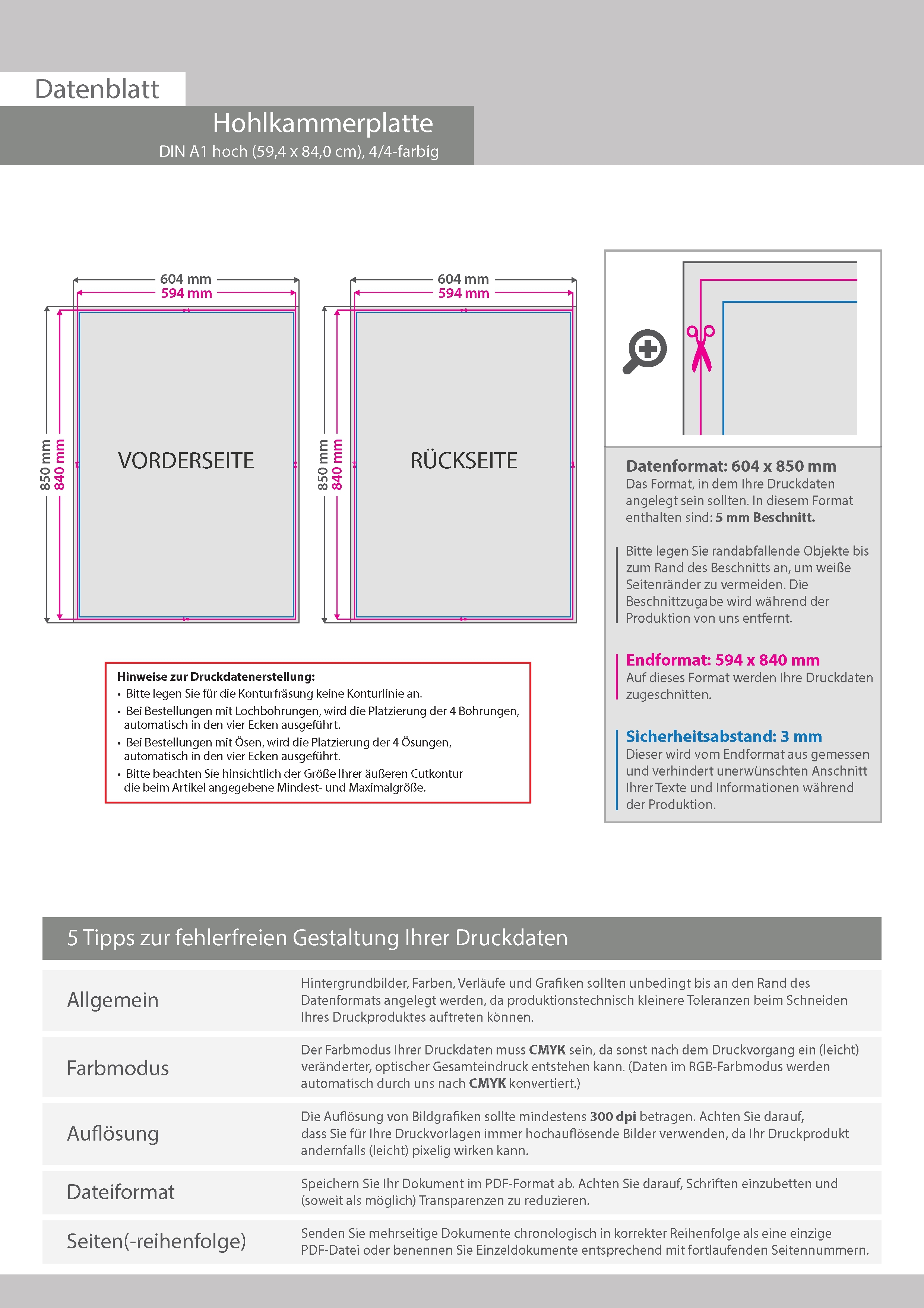 Hohlkammerplatte DIN A1 hoch (59,4 x 84,0 cm), 4/4-farbig bedruckt