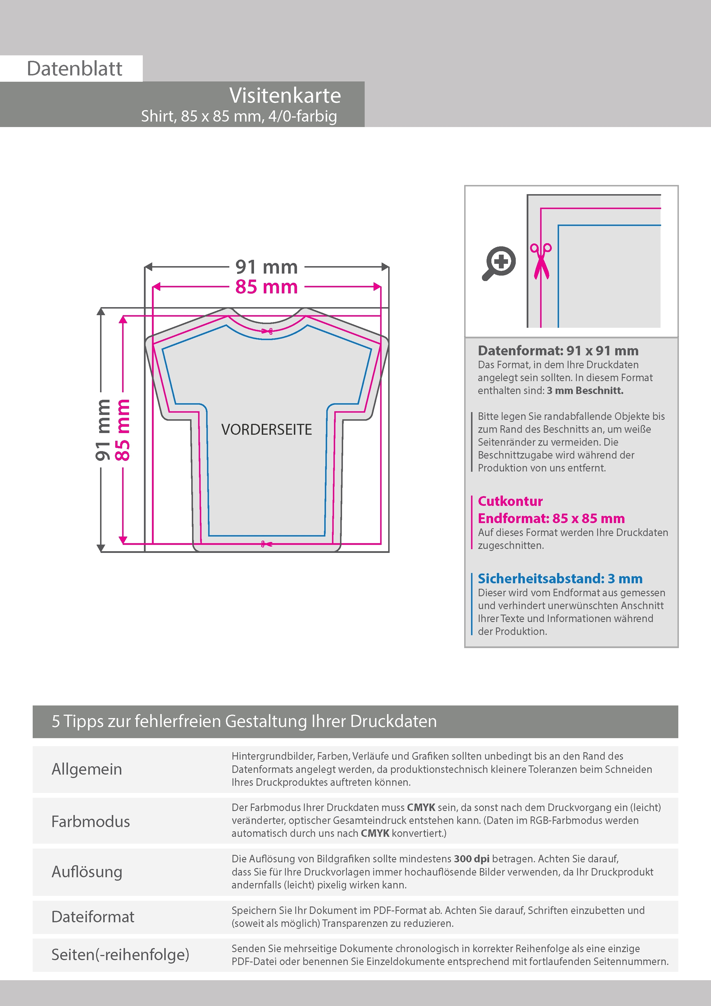 Visitenkarte Shirt, 85 x 85 mm, 1-seitig, 4/0-farbig CMYK