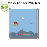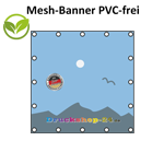 PVC-freie Mesh-Banner bestehen aus stabilem Polyester-Gittergewebe und kommen ohne PVC-Beschichtung aus. Dadurch gelten sie als nachhaltigere Alternative zu klassischen PVC-Werbebannern.