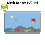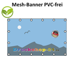 PVC-freie Mesh-Banner bestehen aus stabilem Polyester-Gittergewebe und kommen ohne PVC-Beschichtung aus. Dadurch gelten sie als nachhaltigere Alternative zu klassischen PVC-Werbebannern.