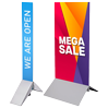Für freistehende Schilder eignen sich Paneelbasen aus Aluminium oder Stahl, je nach gewünschter Stabilität und Einsatzbereich.